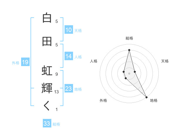 白田 虹輝くさんを姓名の画数から五運を鑑定