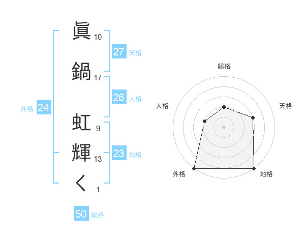 眞鍋 虹輝くさんの総格は50画の2点!