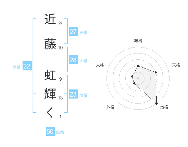 近藤 虹輝くさんを姓名の画数から五運を鑑定