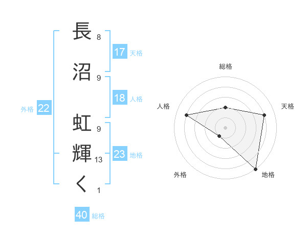 長沼 虹輝くさんの総格は40画の2点!
