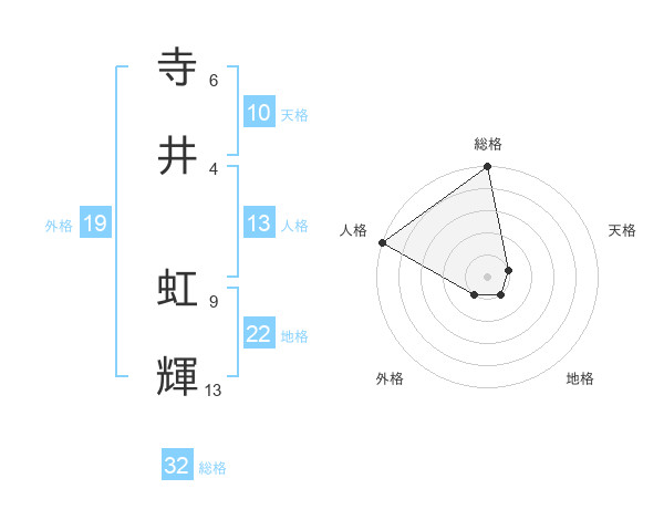 寺井 虹輝さんを姓名の画数から五運を鑑定