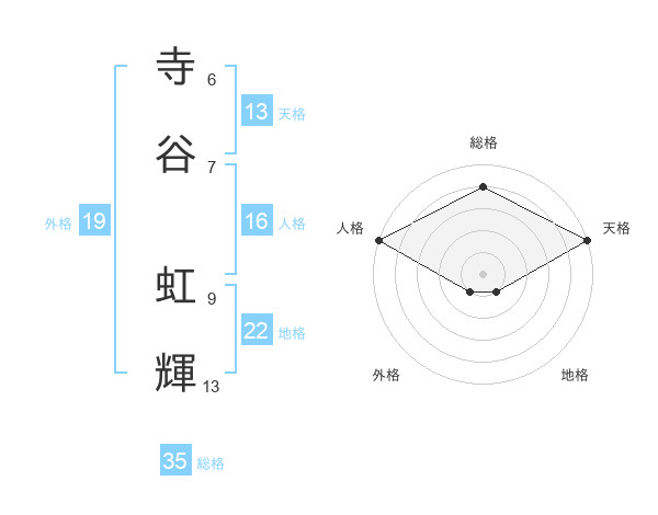 寺谷 虹輝さんを姓名の画数から五運を鑑定