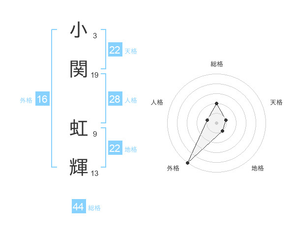 小関 虹輝さんを姓名の画数から五運を鑑定