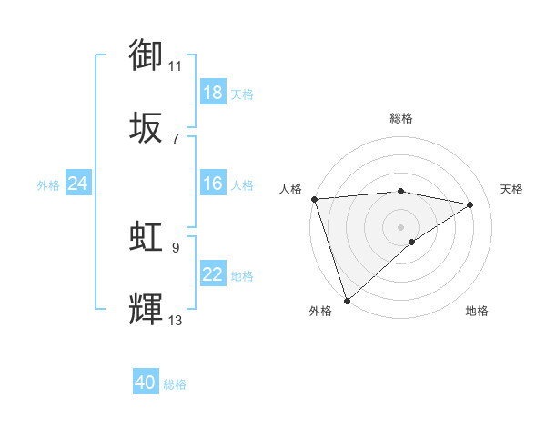 御坂 虹輝さんを姓名の画数から五運を鑑定