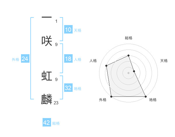 一咲 虹麟さんの総格は42画の3点!