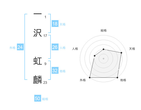 一沢 虹麟さんを姓名の画数から五運を鑑定