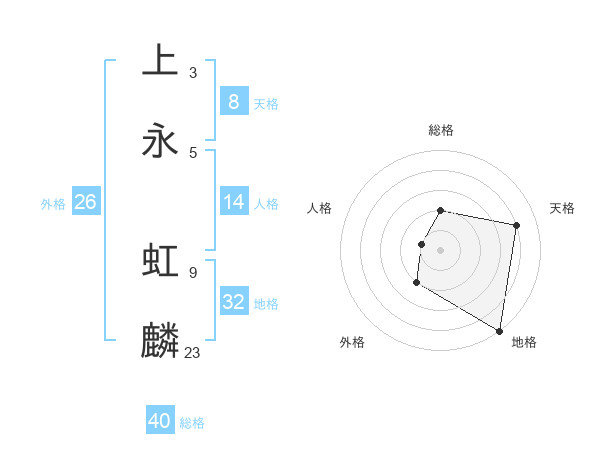 上永 虹麟さんを姓名の画数から五運を鑑定