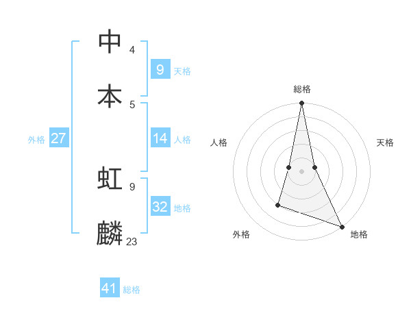 中本 虹麟さんを姓名の画数から五運を鑑定