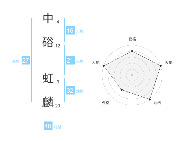 中硲 虹麟さんの総格は48画の4点!
