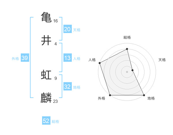 亀井 虹麟さんの総格は52画の4点!