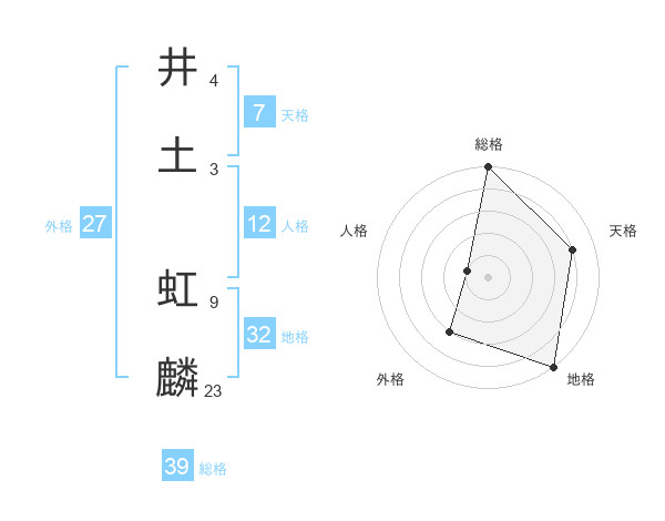 井土 虹麟さんを姓名の画数から五運を鑑定