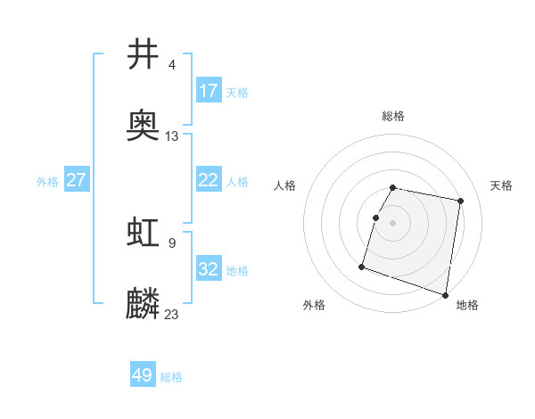 井奥 虹麟さんの総格は49画の2点!