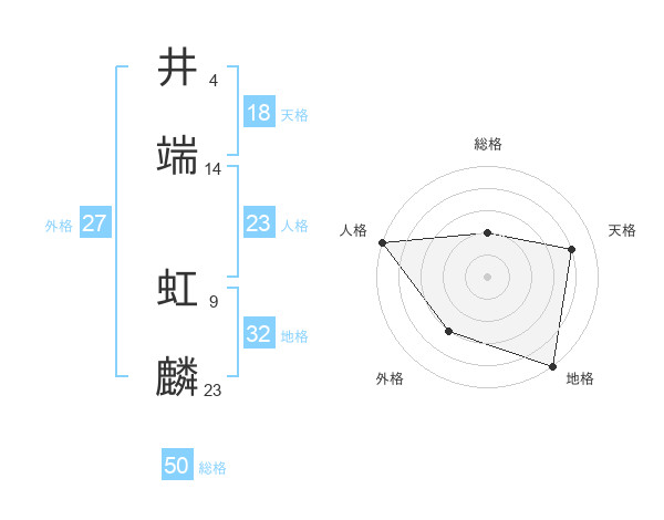井端 虹麟さんを姓名の画数から五運を鑑定