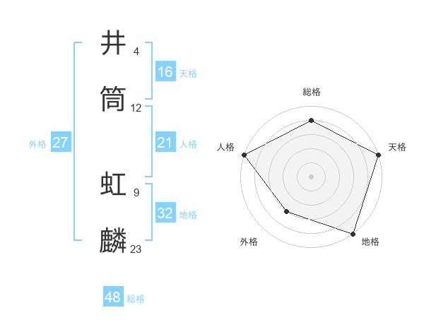 井筒 虹麟さんを姓名の画数から五運を鑑定
