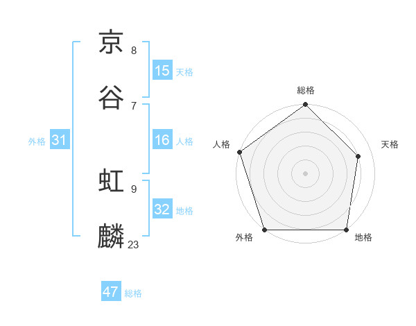 京谷 虹麟さんの総格は47画の5点!