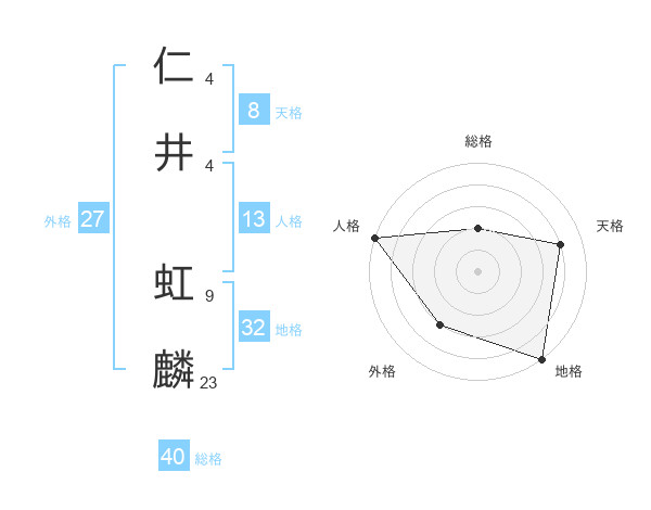 仁井 虹麟さんの総格は40画の2点!