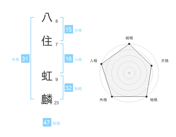八住 虹麟さんの総格は47画の5点!