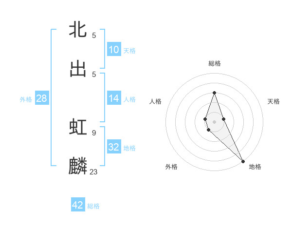 北出 虹麟さんの総格は42画の3点!