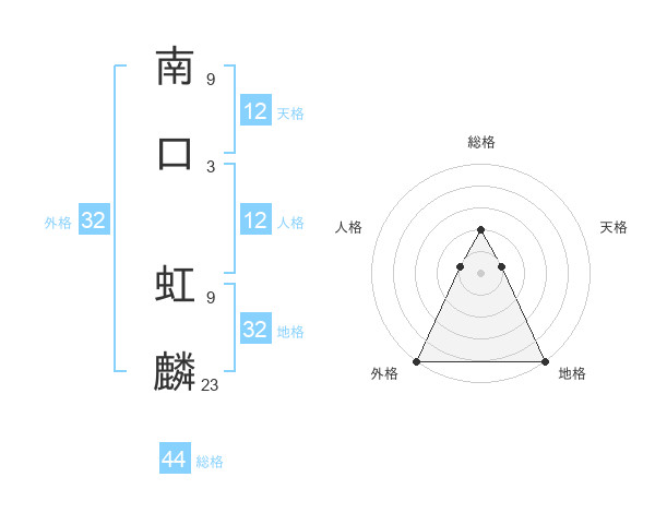 南口 虹麟さんを姓名の画数から五運を鑑定