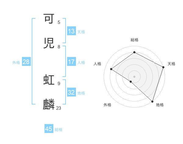 可児 虹麟さんの総格は45画の4点!