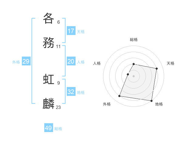 各務 虹麟さんを姓名の画数から五運を鑑定