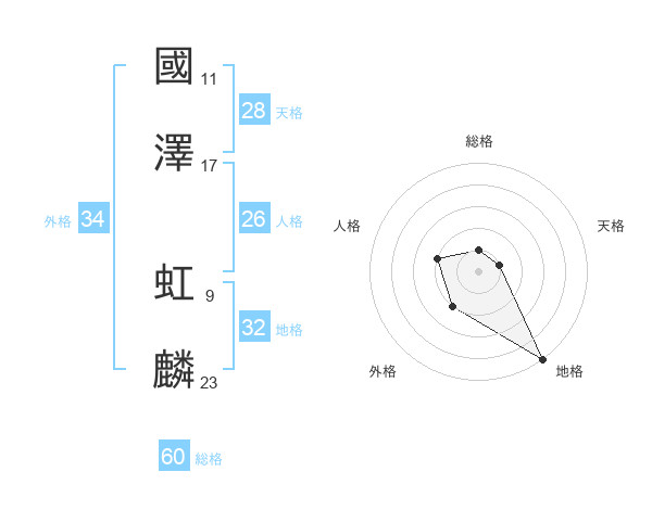 國澤 虹麟さんを姓名の画数から五運を鑑定