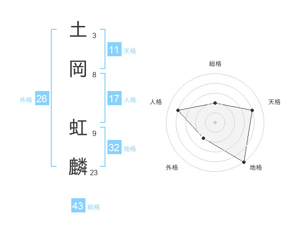土岡 虹麟さんを姓名の画数から五運を鑑定