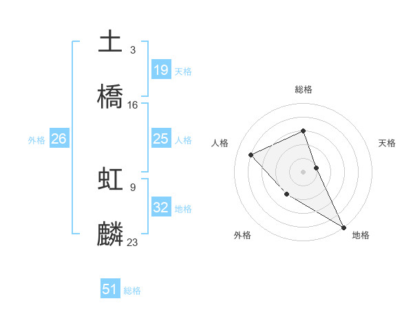 土橋 虹麟さんの総格は51画の3点!