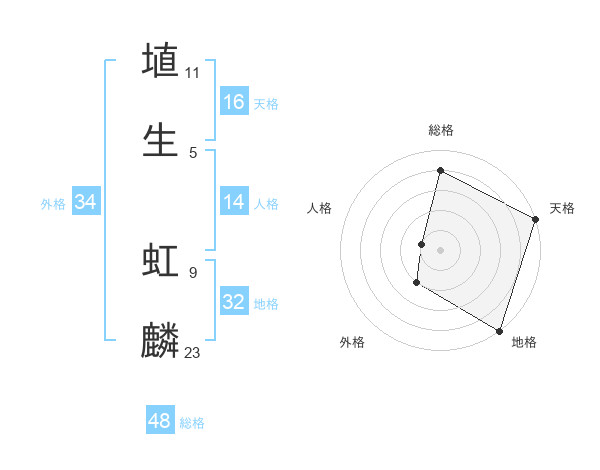 埴生 虹麟さんを姓名の画数から五運を鑑定