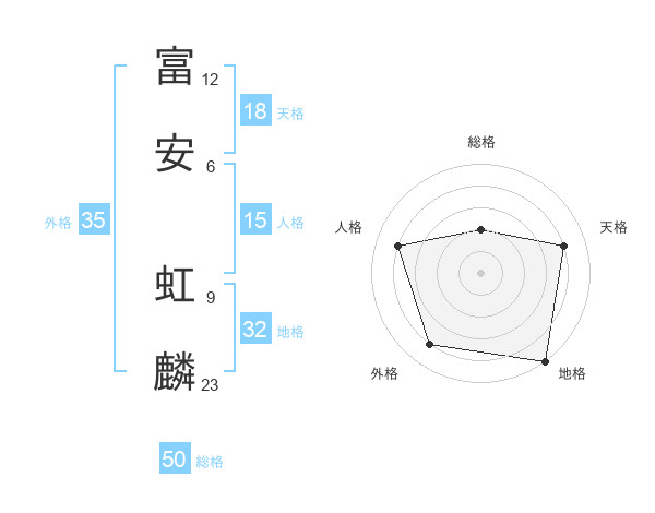 富安 虹麟さんの総格は50画の2点!