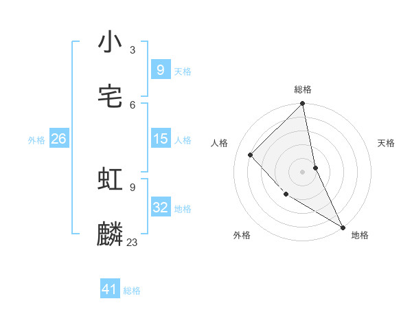 小宅 虹麟さんを姓名の画数から五運を鑑定