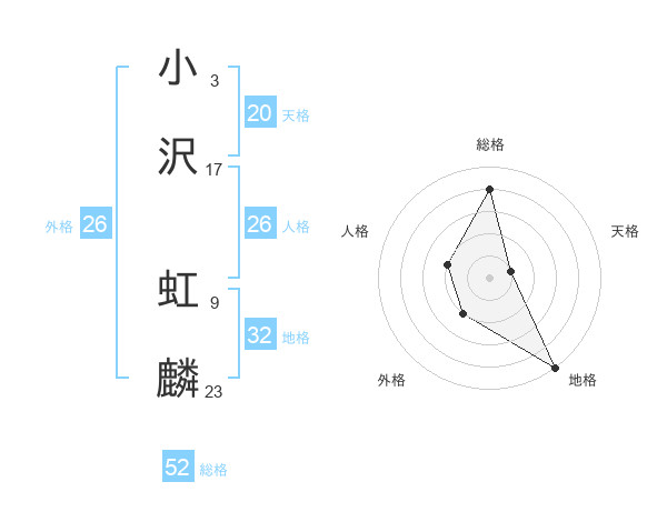 小沢 虹麟さんの総格は52画の4点!