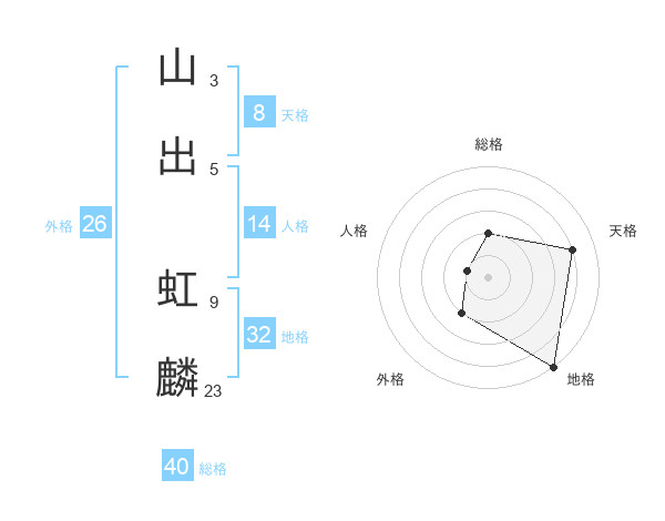 山出 虹麟さんを姓名の画数から五運を鑑定