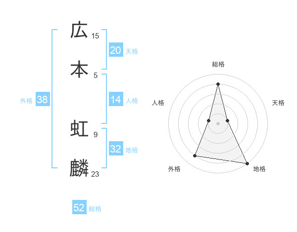 広本 虹麟さんの総格は52画の4点!