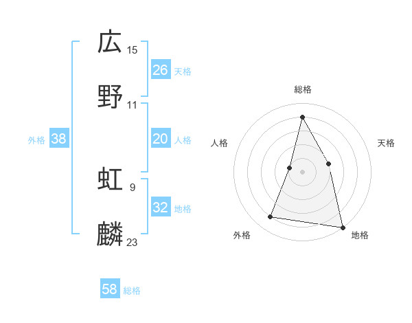 広野 虹麟さんを姓名の画数から五運を鑑定