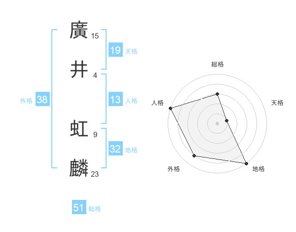 廣井 虹麟さんの総格は51画の3点!