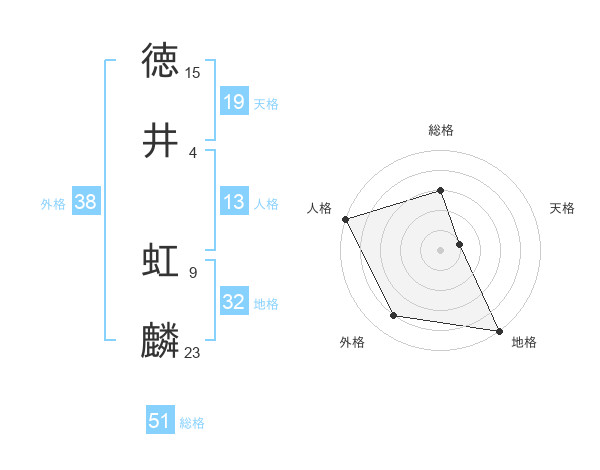 徳井 虹麟さんの総格は51画の3点!