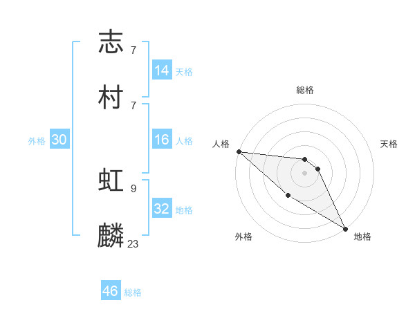 志村 虹麟さんの総格は46画の1点!