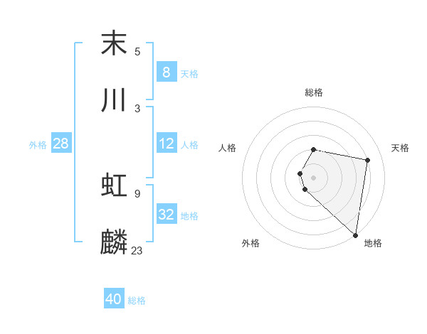 末川 虹麟さんの総格は40画の2点!