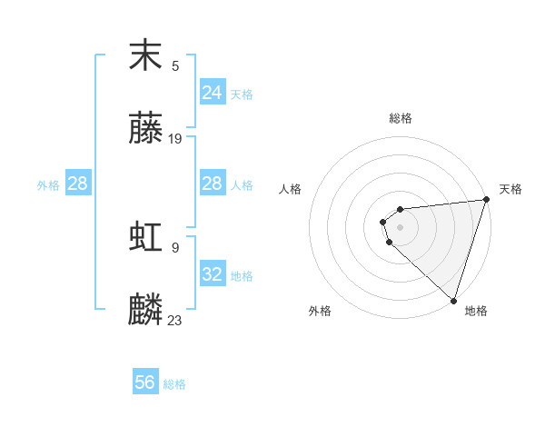 末藤 虹麟さんの天格は24画の5点!