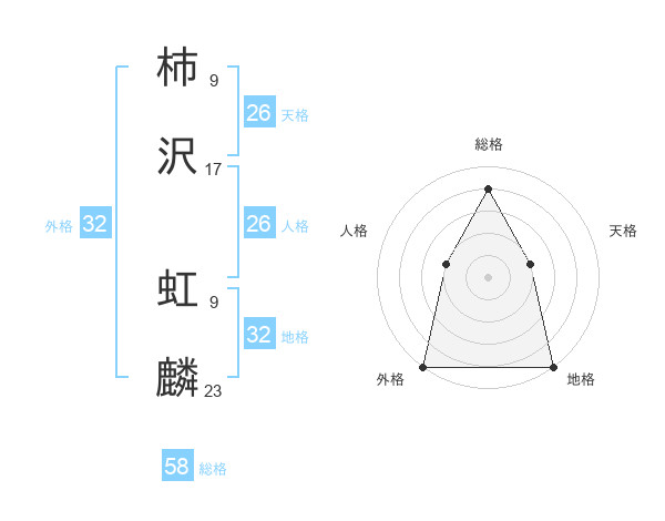 柿沢 虹麟さんの総格は58画の4点!