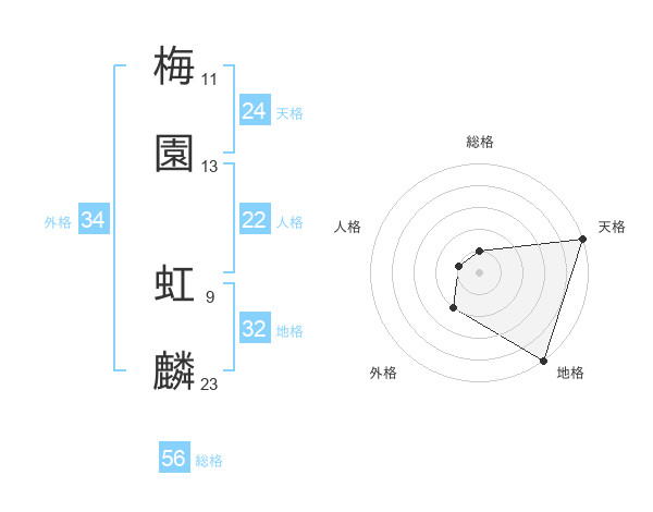 梅園 虹麟さんを姓名の画数から五運を鑑定