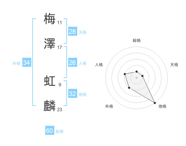 梅澤 虹麟さんの総格は60画の1点!