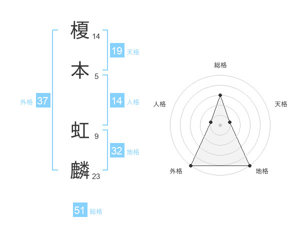 榎本 虹麟さんの総格は51画の3点!