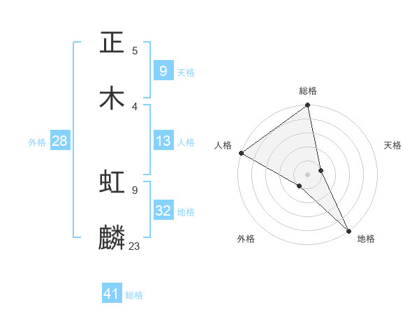正木 虹麟さんの総格は41画の5点!
