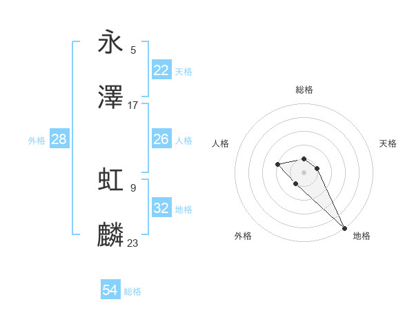 永澤 虹麟さんを姓名の画数から五運を鑑定