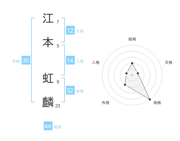 江本 虹麟さんの地格は32画の5点!
