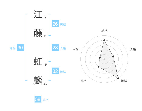 江藤 虹麟さんの総格は58画の4点!