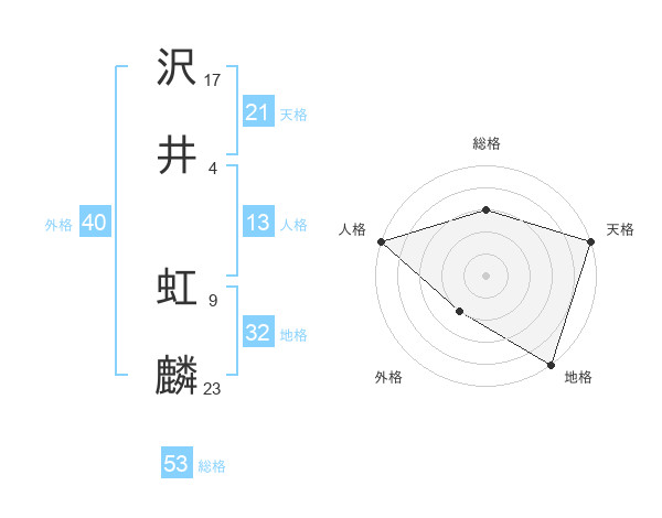沢井 虹麟さんの総格は53画の3点!