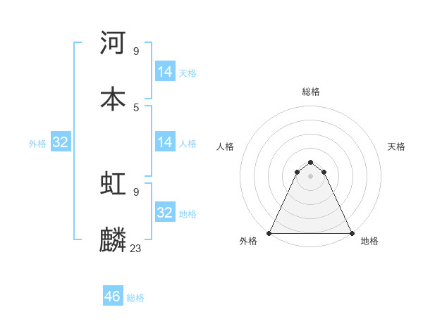 河本 虹麟さんの外格は32画の5点!